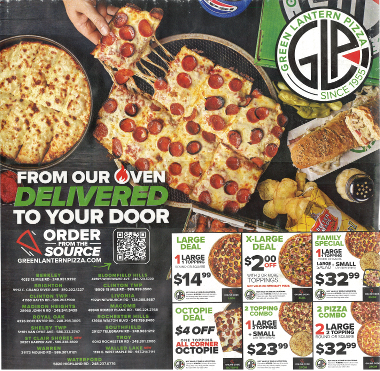 Green Lantern Pizza (click on image to view entire flyer)